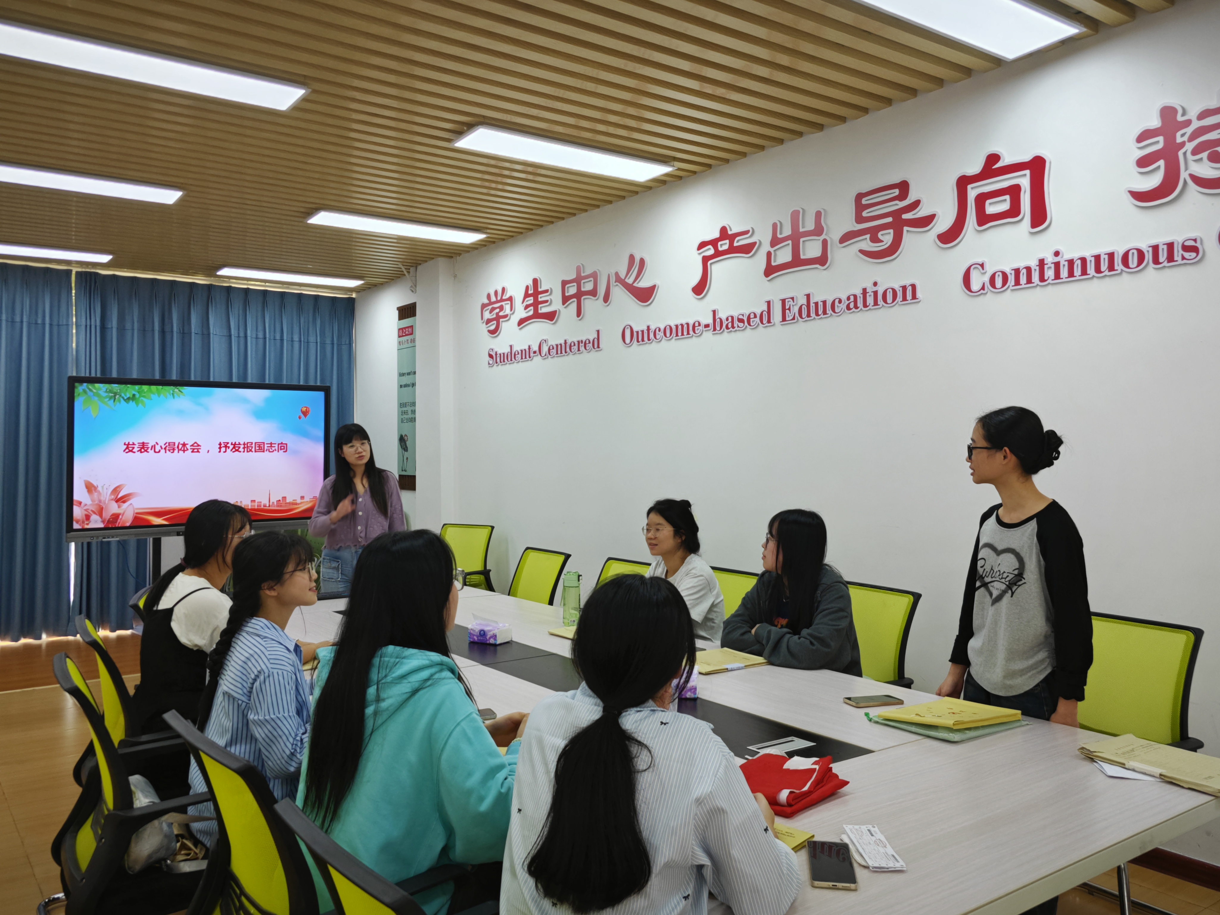 支部全体成员发表心得体会,抒发自己的报国志向。詹秋溢同志说道:通过此次的活动,我更加明确了今后的努力方向。作为一名新时代的学生党员,我要努力学习专业知识,提升自己的综合素质,培养创新思维和实践能力,将个人的理想与国家的现代化建设紧密结合起来,为实现中华民族伟大复兴的中国梦贡献自己的力量。