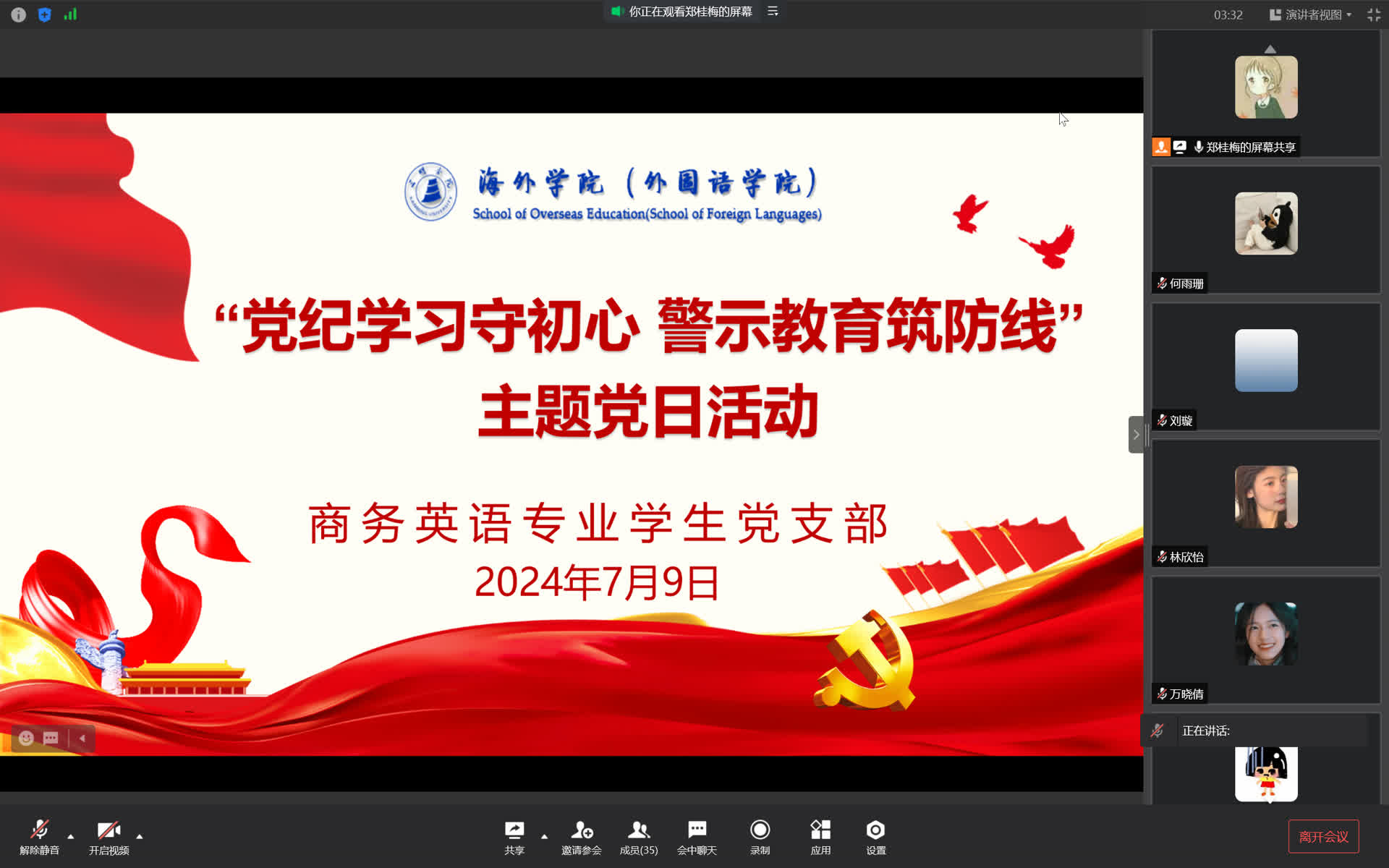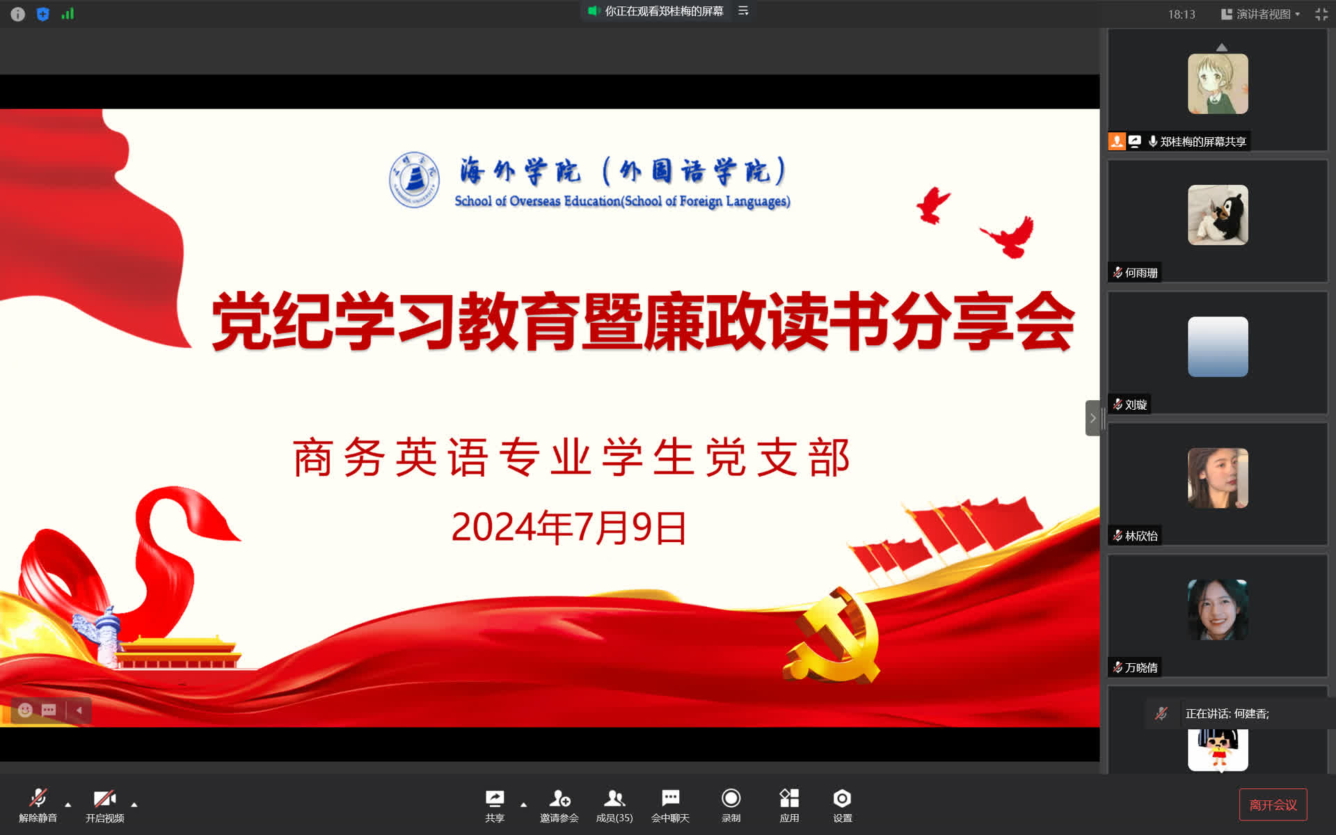 为增强党员纪律意识,保持廉洁自律,7月9日,商务英语专业学生党支部开展了“党纪学习守初心,警示教育筑防线”主题党日活动,支部全体党员参加。