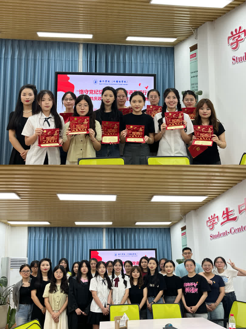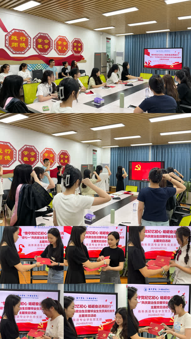 6月18日,海外学院(外国语学院)商务英语专业学生党支部于在鸿文楼(二)C107开展“恪守党纪忆初心 砥砺奋进再前行”“迎七一”共庆政治生日暨毕业生党员离校教育主题党日活动。