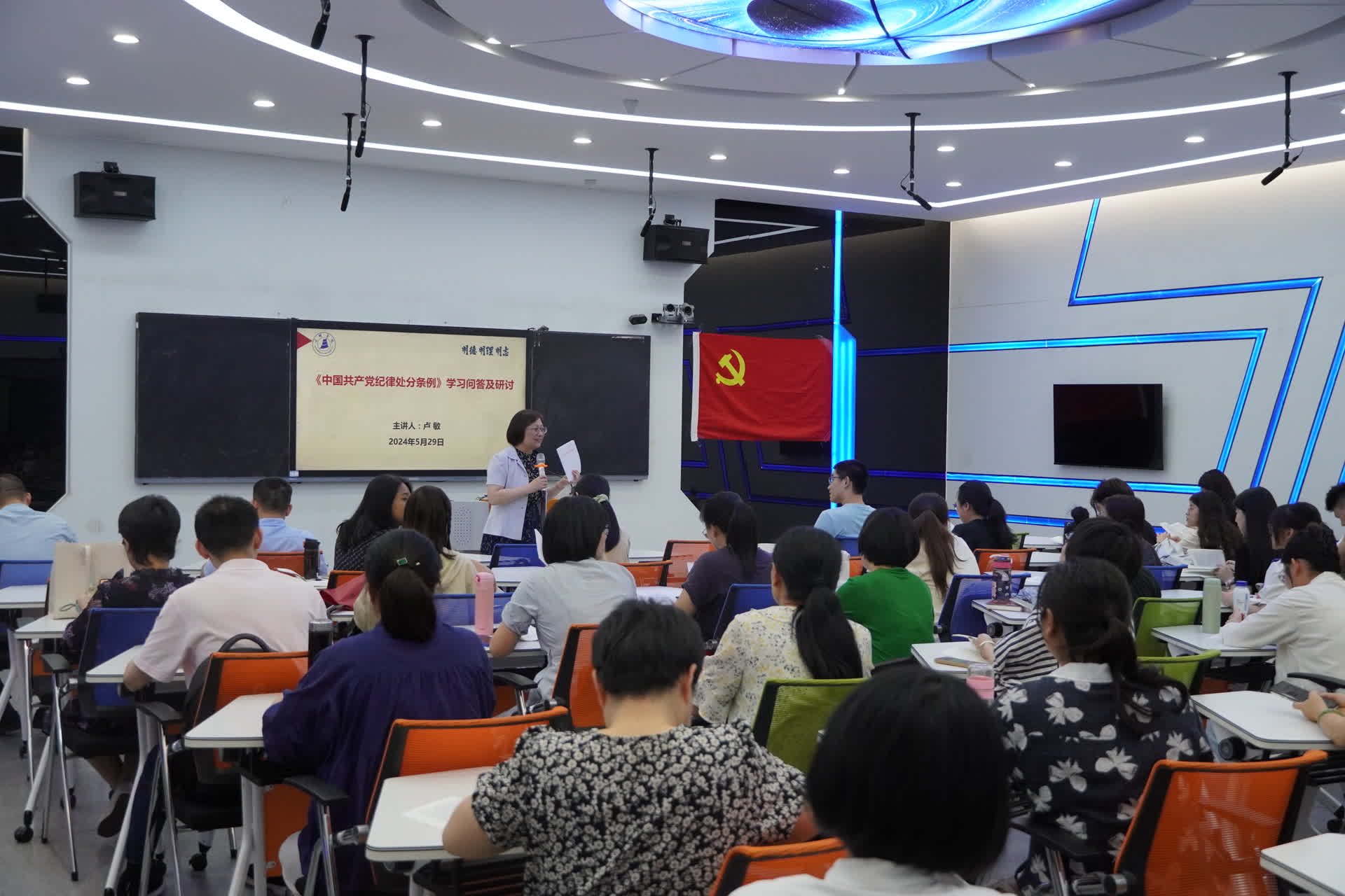 召开大会之前,卢敏院长围绕《中国共产党纪律处分条例》给全院师生党员上了一堂专题党课,采用师生互动的方式,一起学深学透《条例》内容,充分调动了学习氛围。
