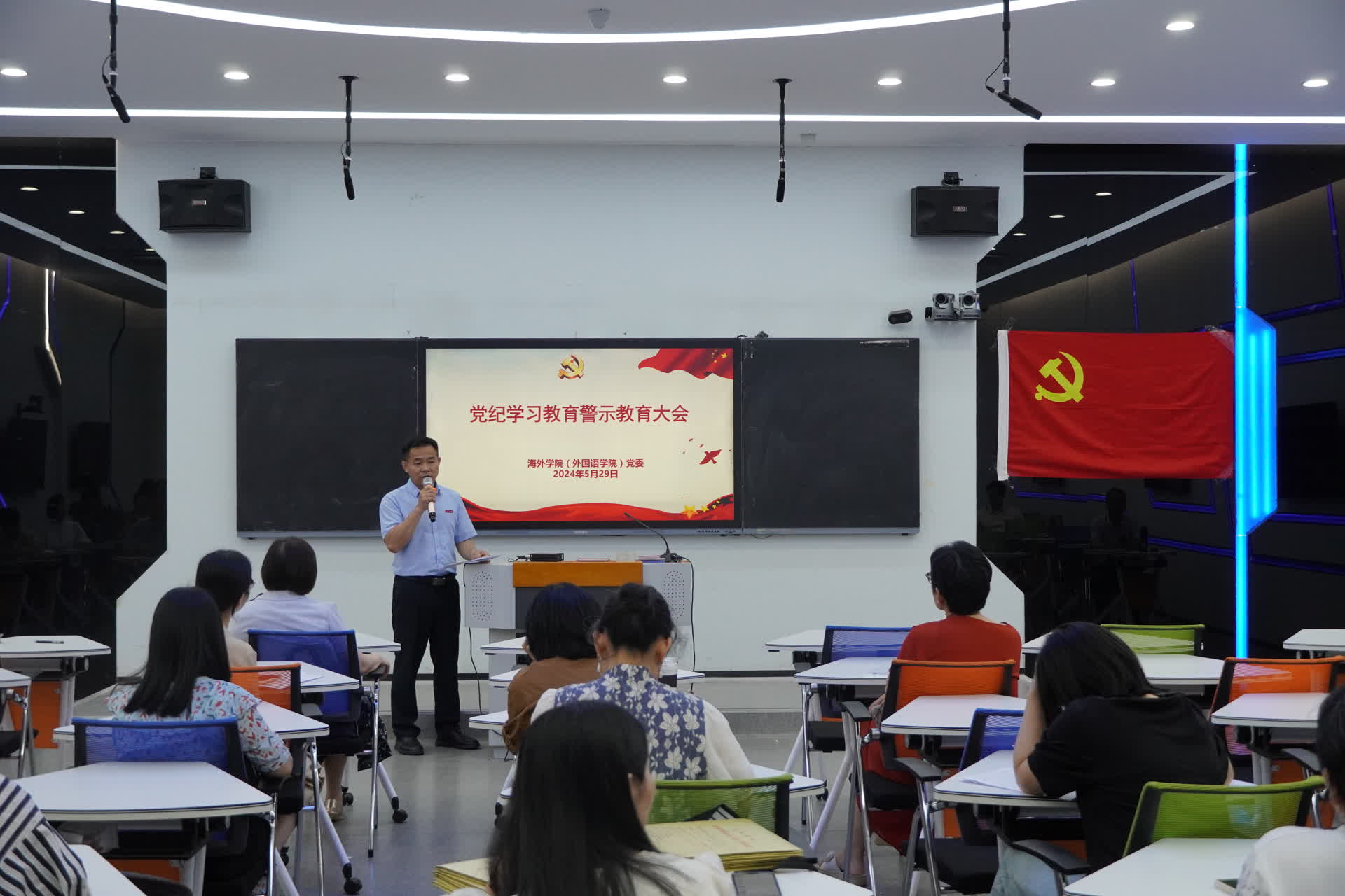 为进一步推动党纪学习教育入脑入心、走深走实,教育引导广大党员干部受警醒、明底线、知敬畏,5月29日下午,海外学院(外国语学院)召开党纪学习教育警示教育大会,学院全体师教职工参加。