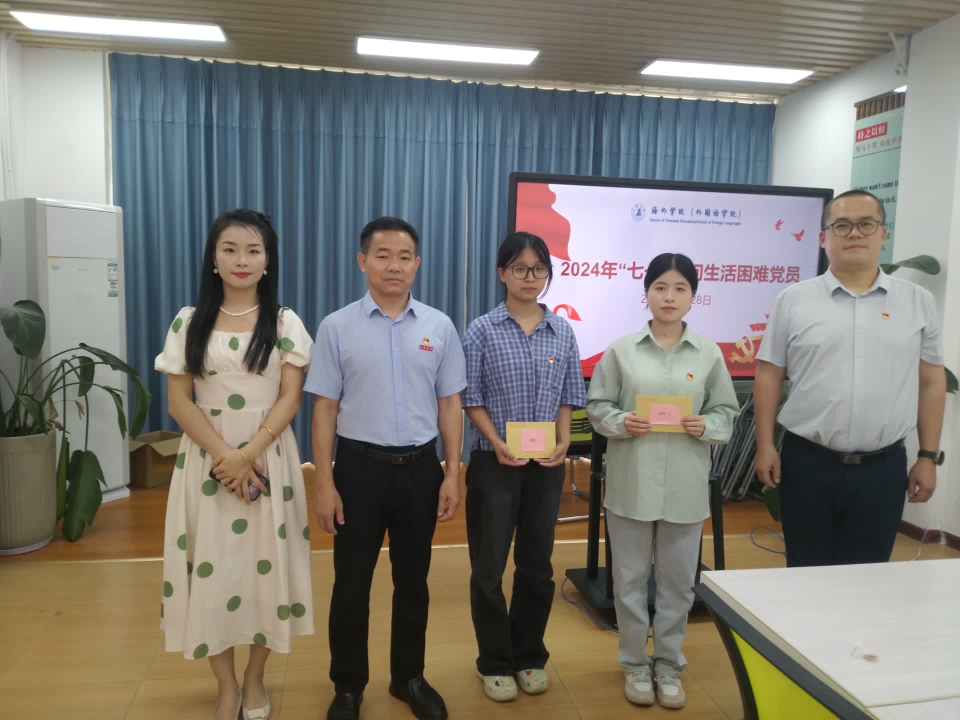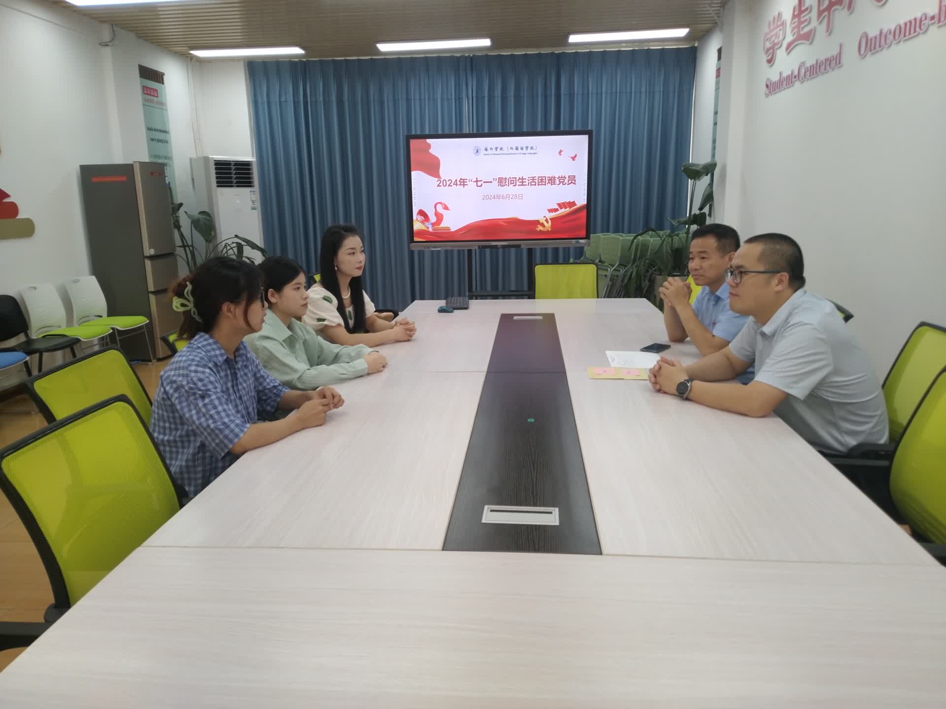 在庆祝中国共产党成立103周年之际,6月28日下午,学院党委书记刘景苗、党委副书记林云对学院生活困难党员代表进行了慰问,为他们送上党组织的关怀与温暖,部分学生支部书记一同参加。