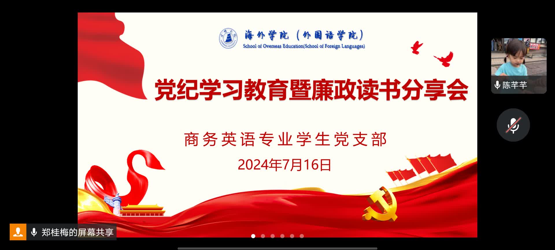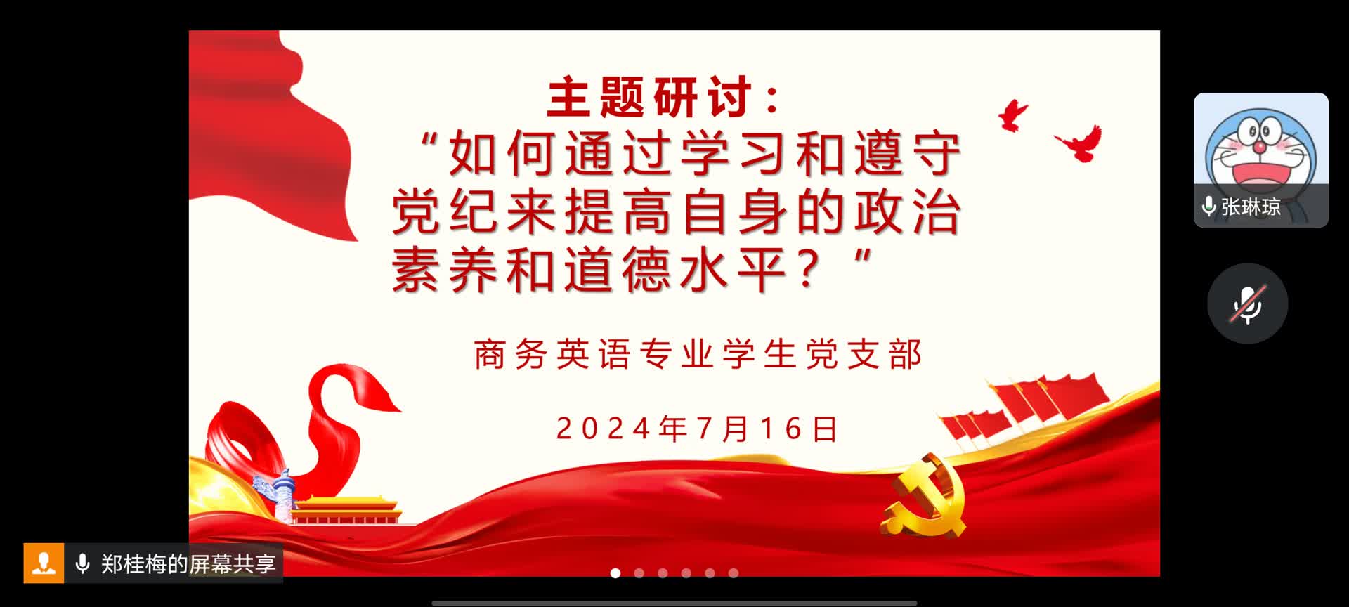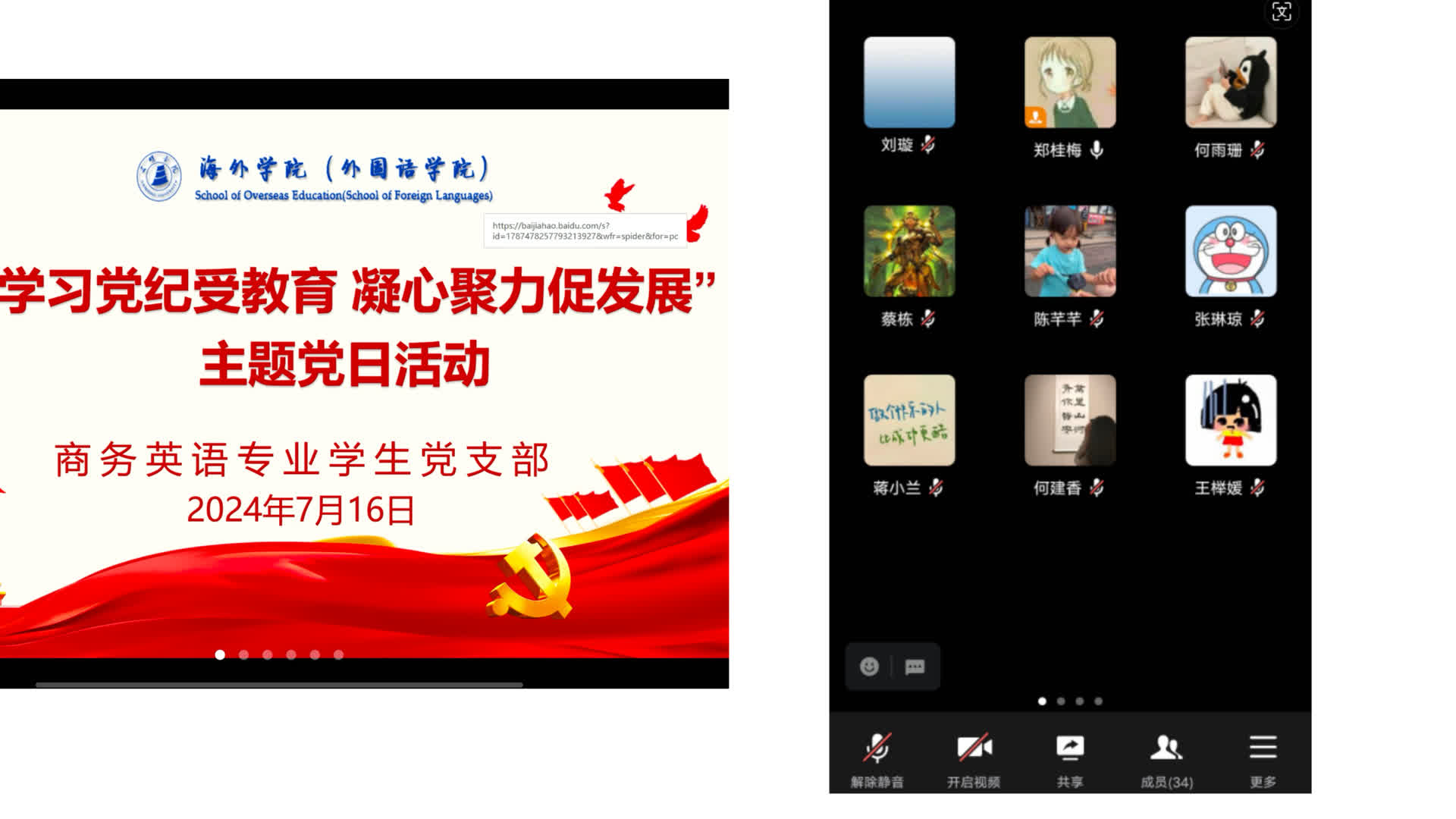 7月16日,商务英语专业学生党支部开展“学习党纪受教育,凝心聚力促发展”主题党日活动,支部全体党员参加。
