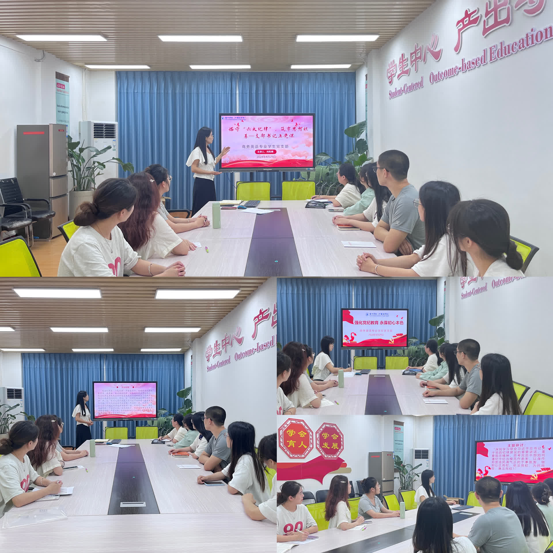 为深入贯彻落实党纪学习教育,强化师生党员的纪律意识,海外学院(外国语学院)商务英语专业学生党支部于4月29日在鸿文楼(二)C107举行了“强化党纪学习教育 永葆初心本色”主题党日活动。
