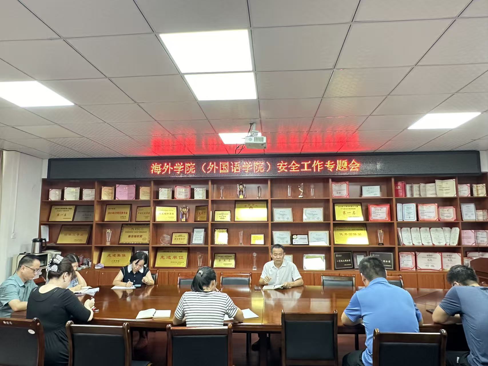 为贯彻落实学校关于校园安全稳定工作的部署要求,切实筑牢校园安全防线,9月26日下午,海外学院(外国语学院)召开安全工作专题会并开展安全检查。学院领导、各科室负责人和全体专兼职辅导员参加。