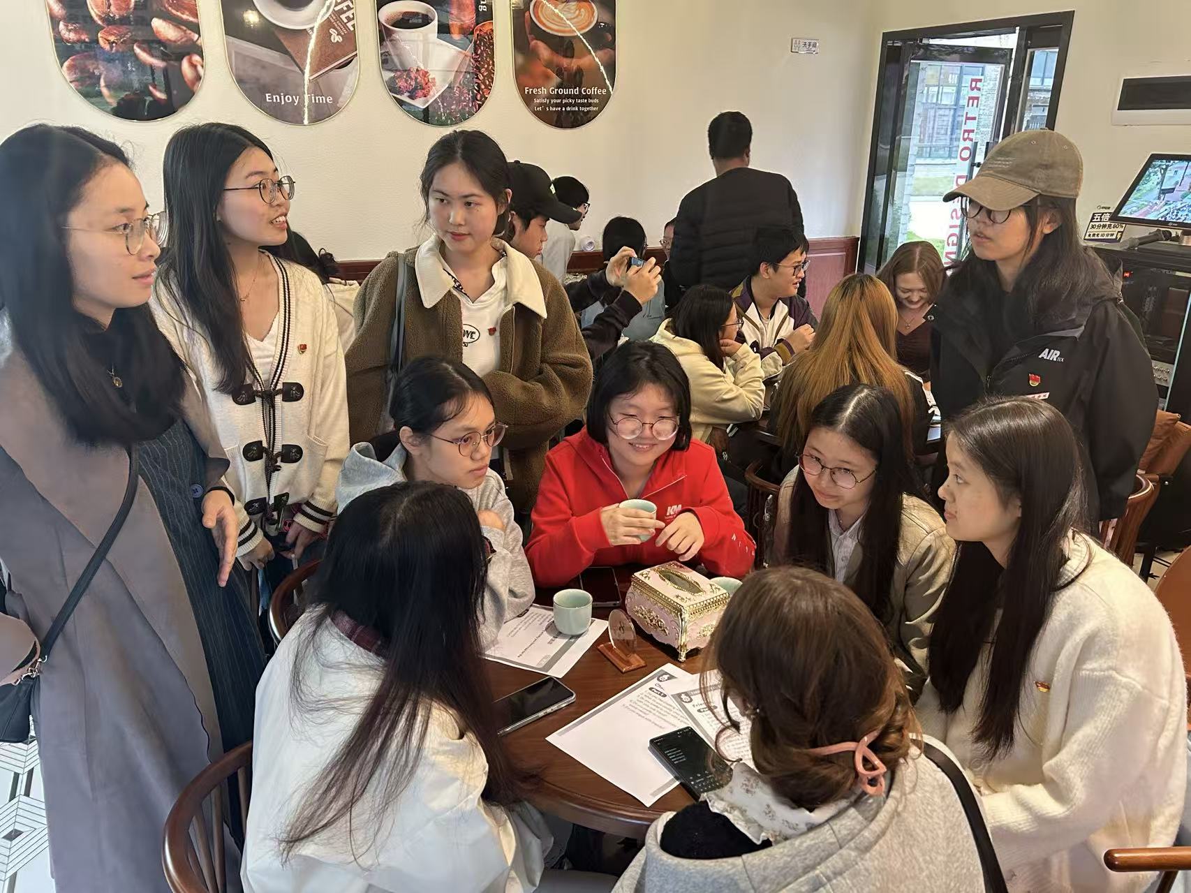 活动尾声,全体参与人员在21咖啡厅指定区域整齐列队,拍摄集体合影,定格中外师生携手交流的温馨瞬间。同时,支部还鼓励各小组结合交流过程中的亮点场景开展自由拍摄,用影像记录互动中的精彩片段。这些照片不仅为师生、学生之间留下了深刻记忆,更进一步强化了活动的凝聚力与影响力,为后续开展类似跨文化交流实践活动营造了良好氛围。