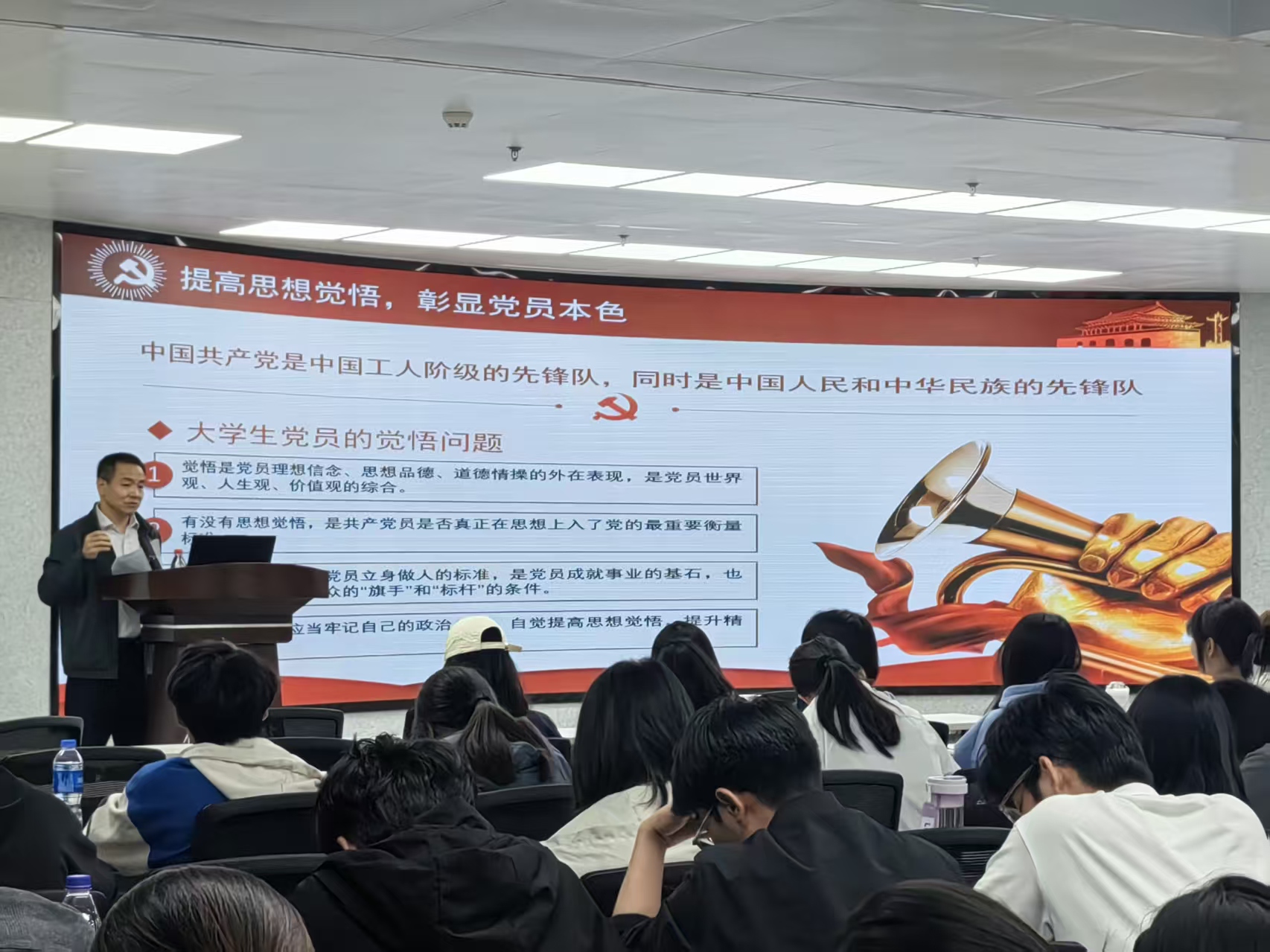 针对大学生群体的特点,培训随后围绕“大学生的党性锤炼”这一核心内容展开。刘书记结合一系列典型案例,深入细致地剖析了大学生党员在思想觉悟、使命担当等方面的核心要求。他特别强调,发展党员工作绝非仅仅是组织程序的规范,更是思想入党的深度淬炼,必须坚决杜绝“程序性入党”的倾向,真正实现“思想上完全入党”。在培训过程中,刘书记还特意列举了1939年刘少奇同志在延安发表的《论共产党员的修养》,引导学员们从党史经典中汲取党性修养的理论滋养和实践路径,让学员们深刻认识到党性修养的重要性和长期性。