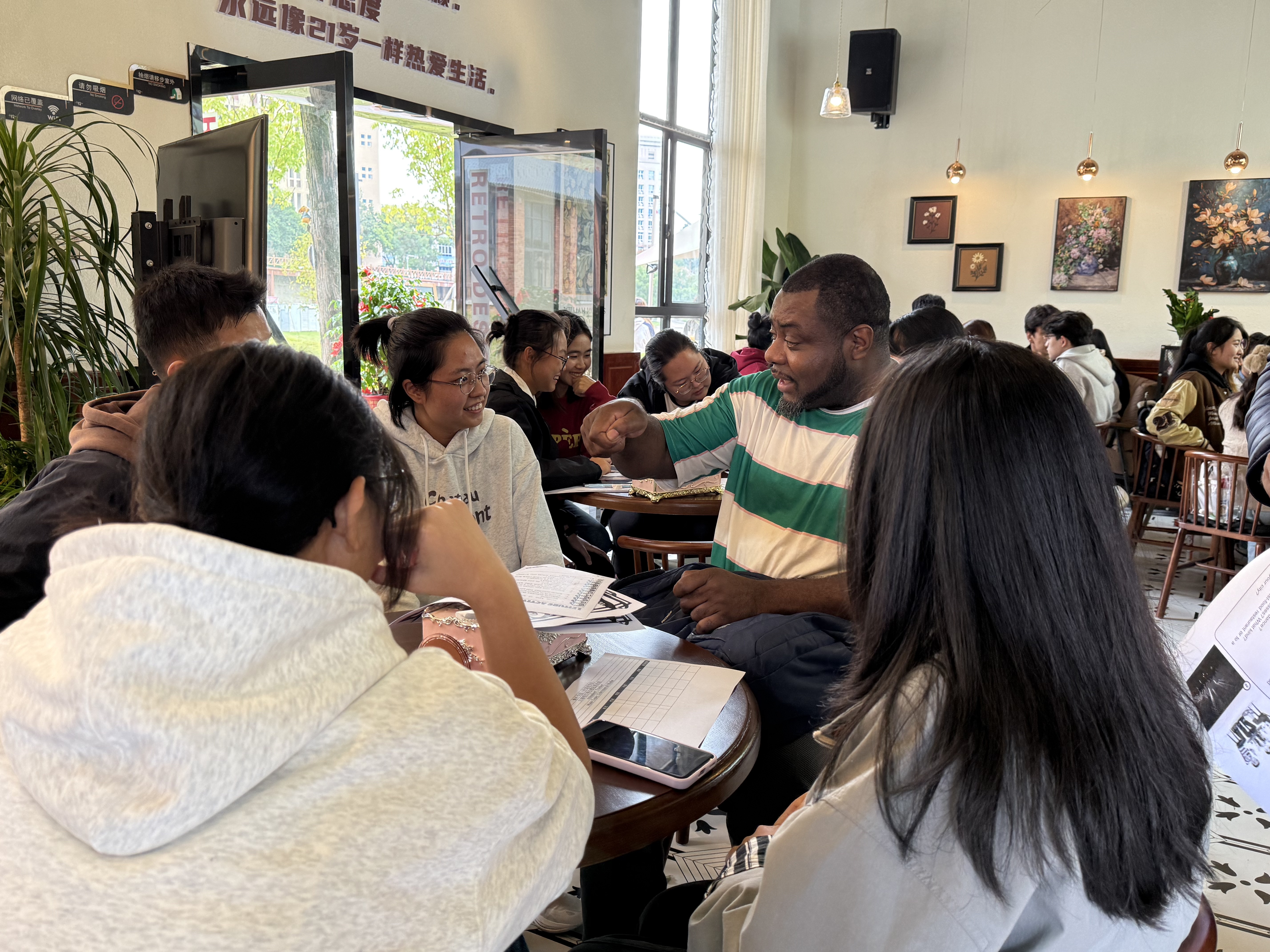 以语为媒,以爱会友。为丰富校园文化生活,提升学生英语综合应用能力,完善第二课堂育人体系,海外学院(外国语学院)依托“一站式”学生社区平台,于11月5日下午在北区咖啡厅成功举办了“雅思英语口语角”活动。活动围绕“hobby sharing”主题展开,海外学院(外国语学院)的外教、各部门工作人员、留学生以及来自不同专业、不同年级的学生四十余人齐聚一堂,共享这一语言交流盛会。