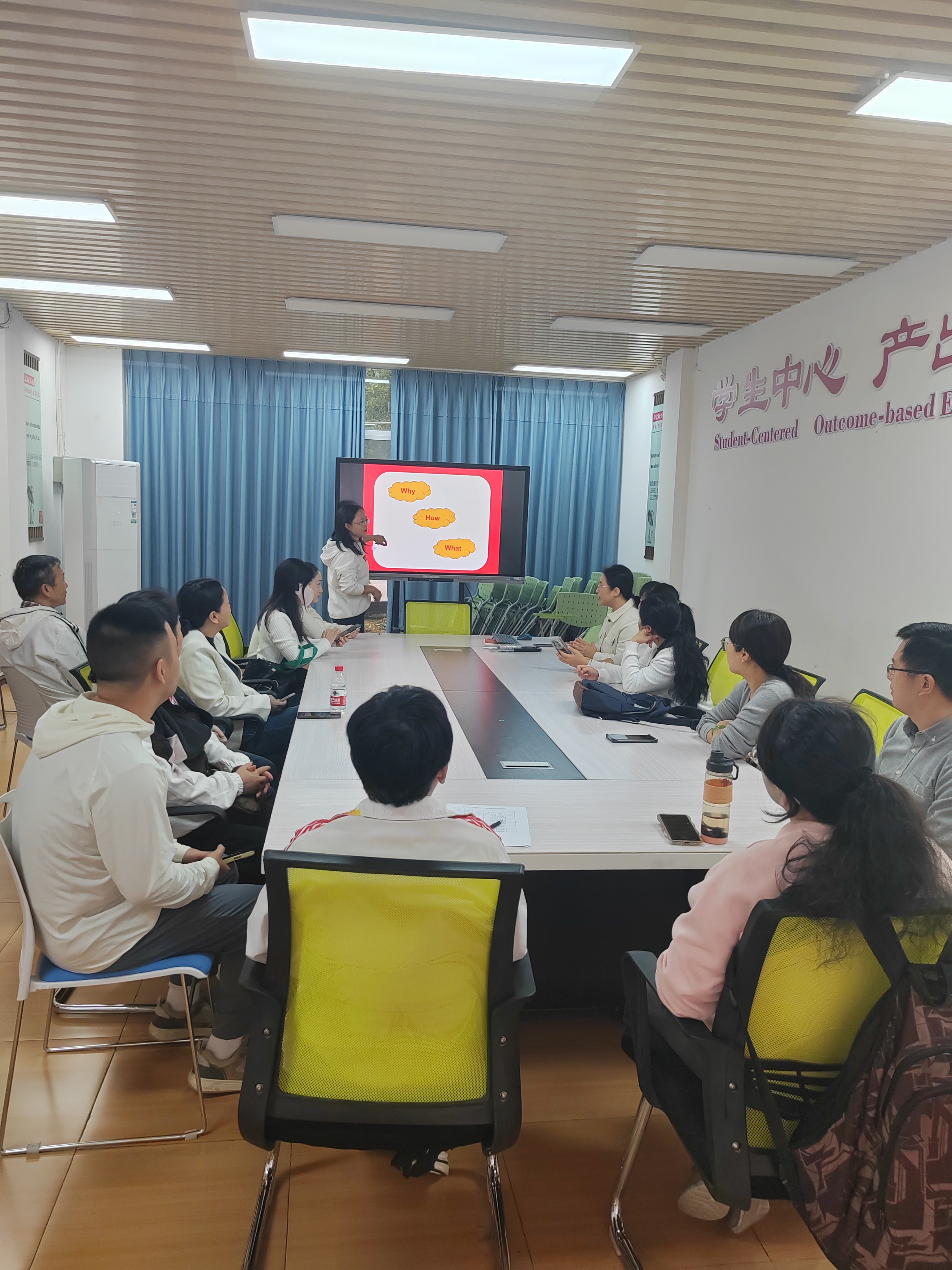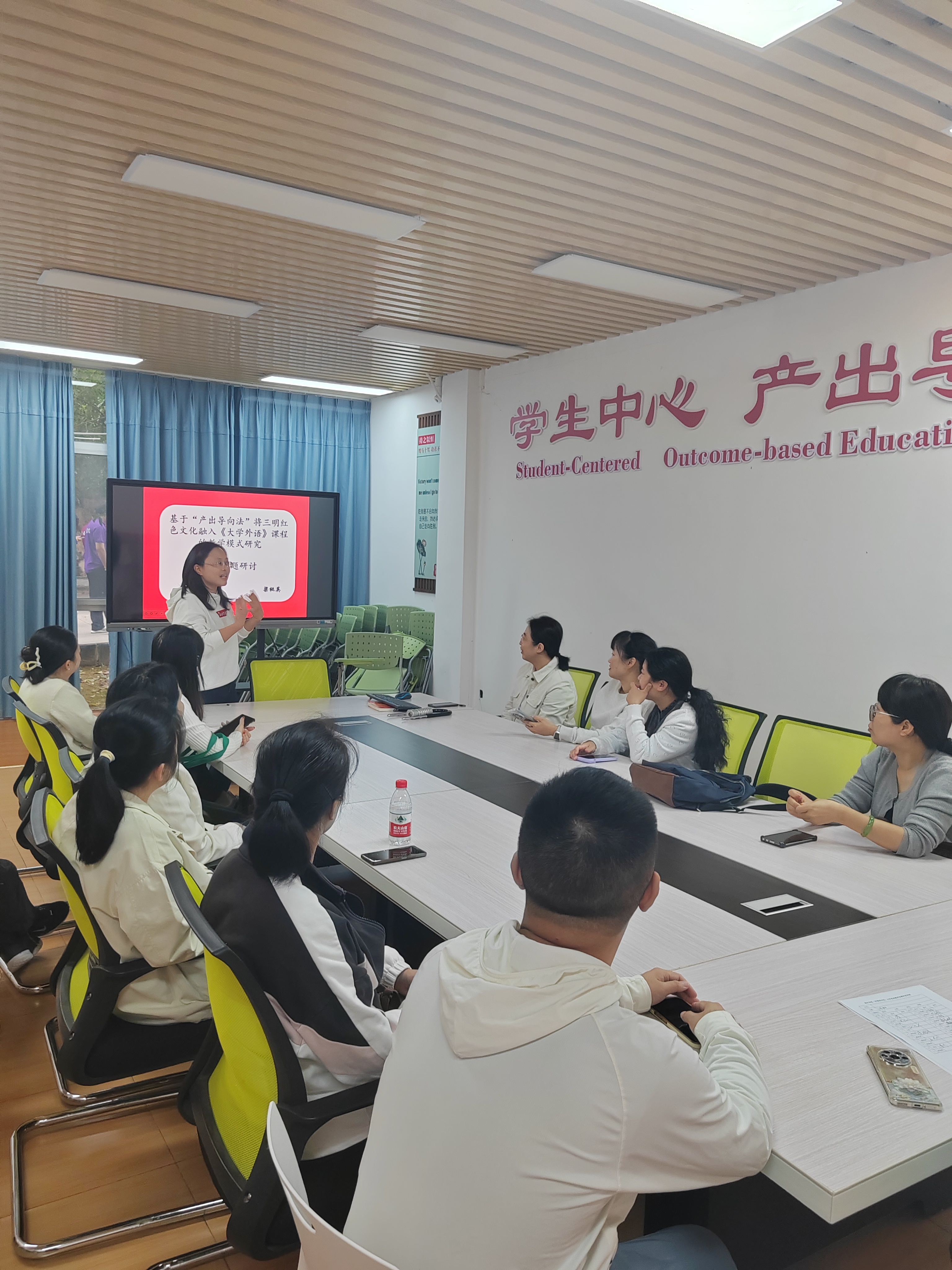 2025年11月11日上午,海外学院(外国语学院)大学英语教研室在鸿文楼(二)C107举办了一场课程思政主题交流活动。梁桃英老师以“基于产出导向法将三明红色文化融入大学外语课程教学模式研究”为题,从“为何融入”“如何融入”“融入效果”这三个维度,阐述其课程思政教学的设计方案与实施路径,分享了她在课程建设方面的创新思路与阶段性成果。