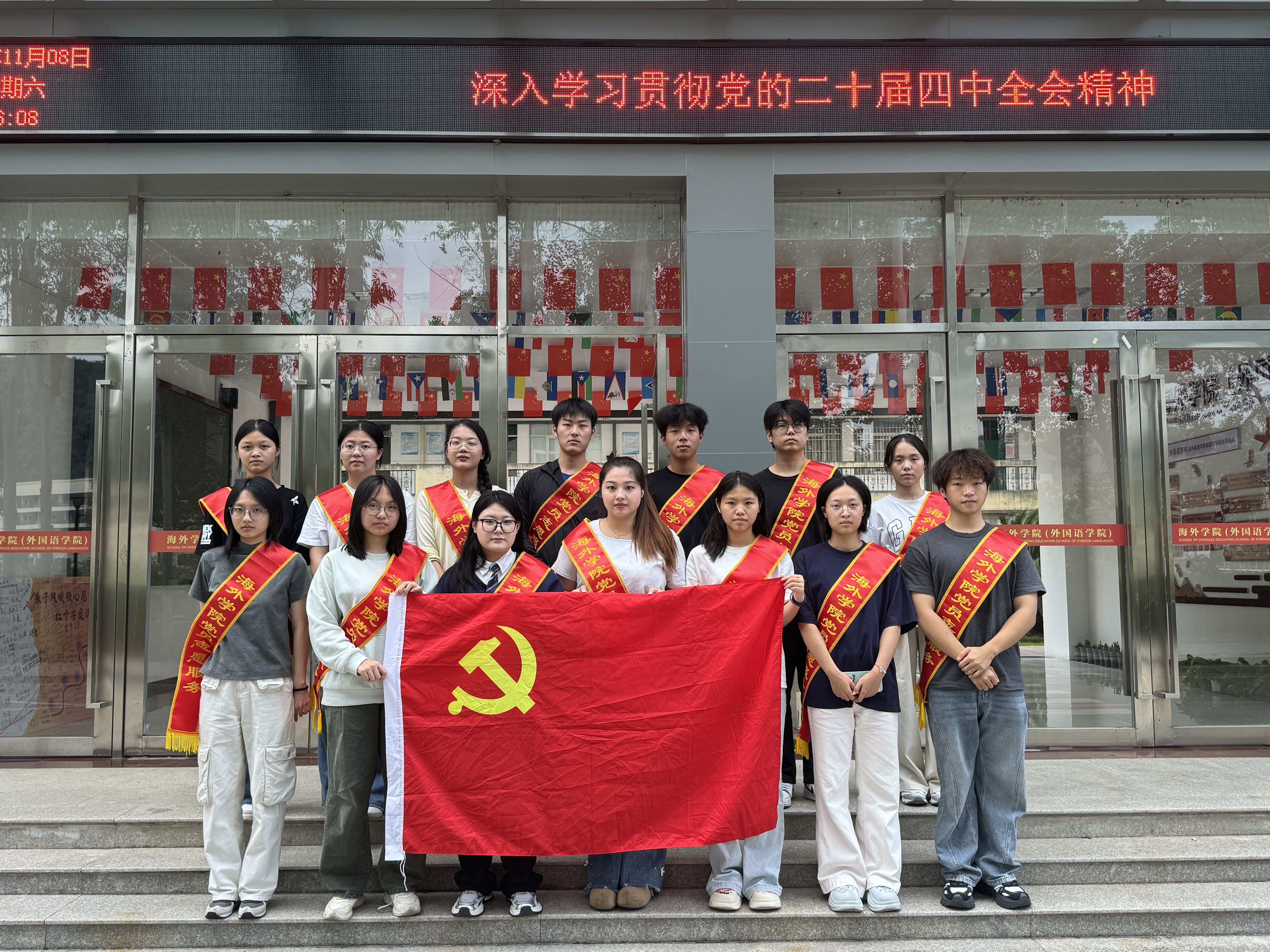 经过两个多小时的辛勤付出,教学楼内外环境焕然一新。此次活动是海外学院(外国语学院)创新党员培养模式的具体实践。未来,学院将继续拓展实践育人路径,引导发展对象在服务与奉献中锤炼党性,以实际行动积极向党组织靠拢。