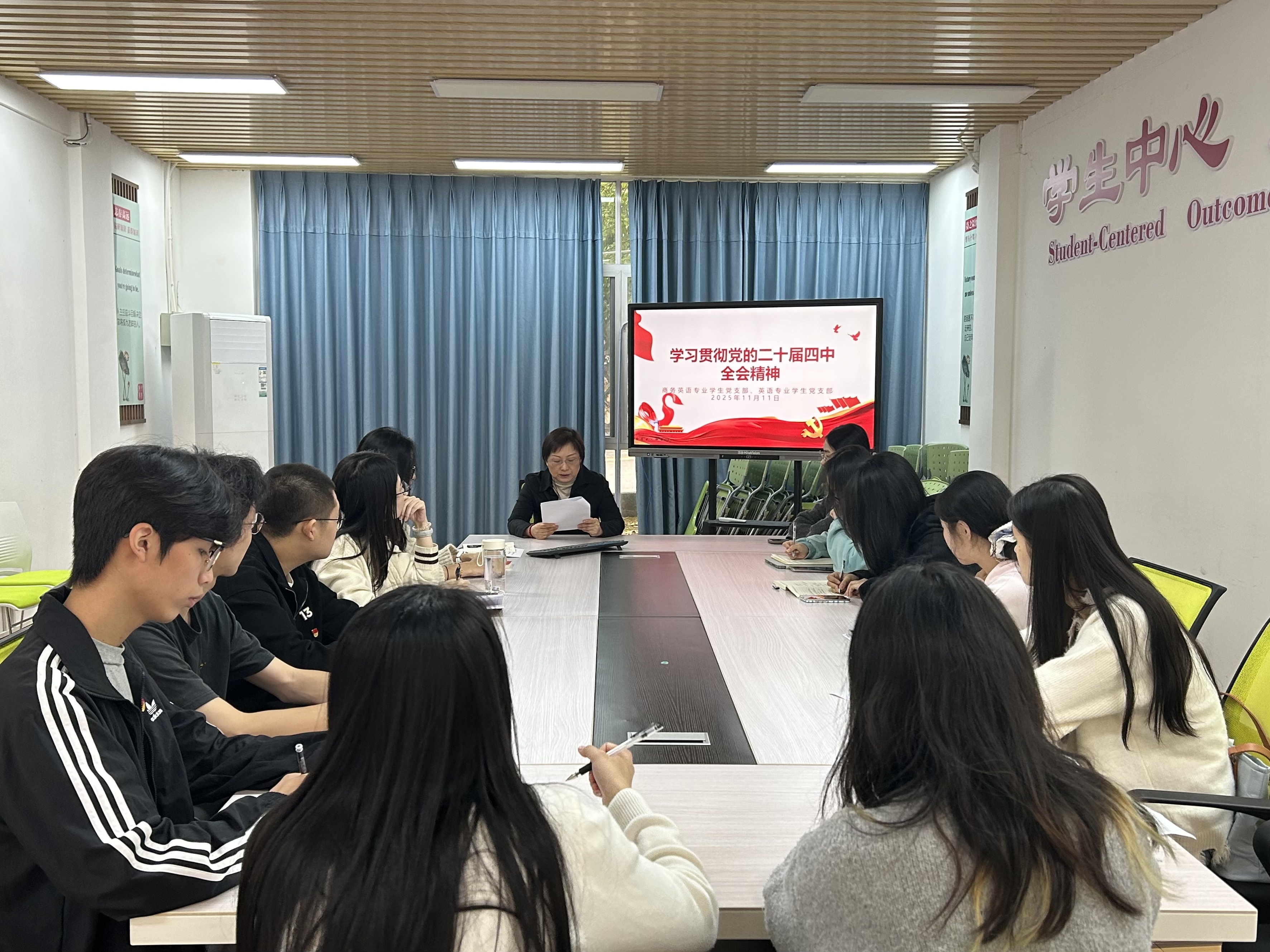 为深入贯彻党的二十届四中全会精神,11月11日,商务英语专业学生党支部挂点院领导林云副书记为支部上“胸怀国之大者 勇担时代重任”学习党的二十届四中全会精神专题党课,支部全体党员参加学习。