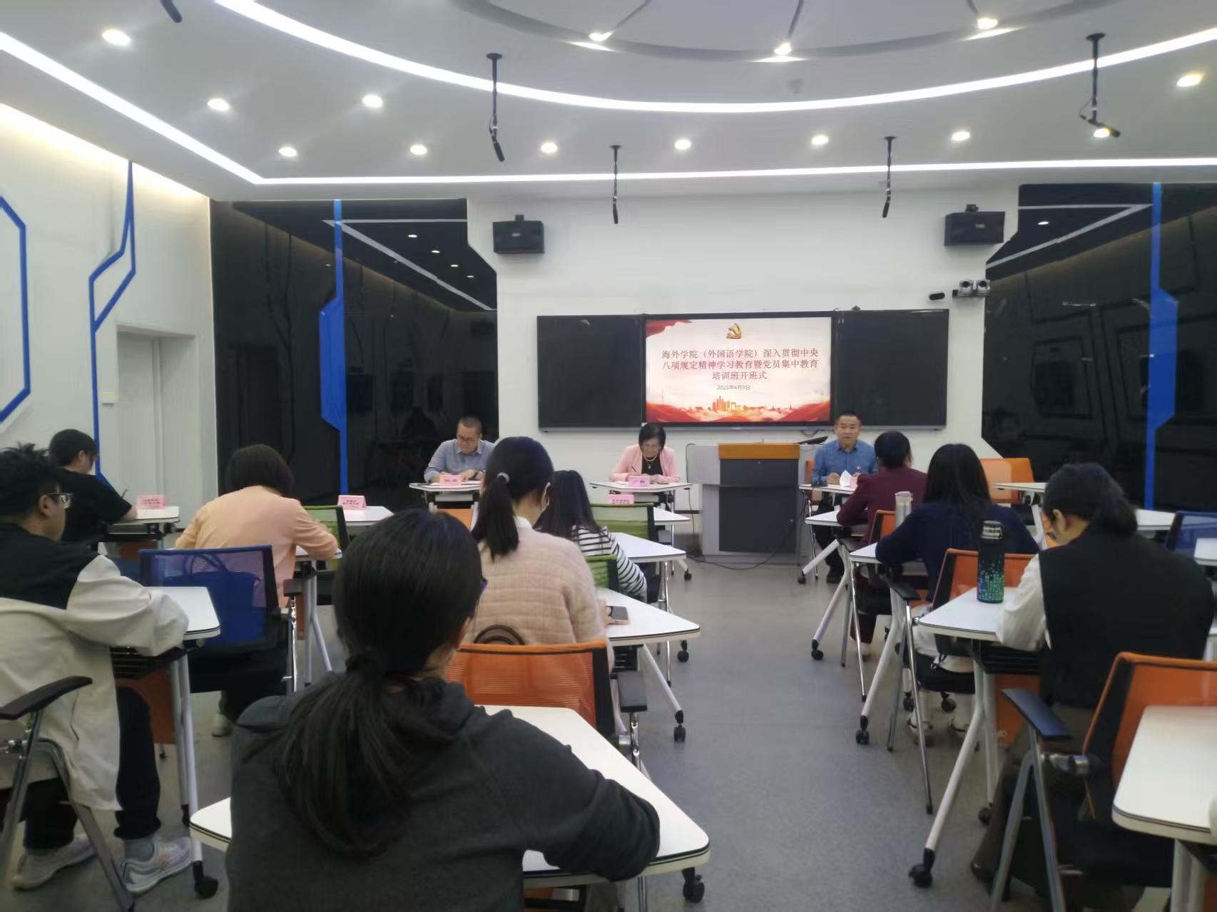 4月9日下午,海外学院(外国语学院)举行学习深入贯彻中央八项规定精神学习教育暨党员集中教育培训班开班仪式。学院党委书记刘景苗主持开班式并作动员讲话,院领导班子成员、全体党员参加了培训。