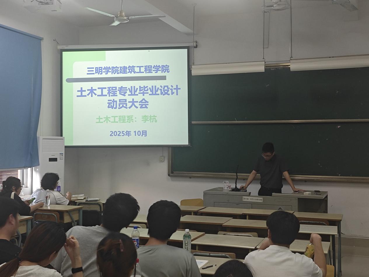10月16日,海外学院(外国语学院)土木工程专业于厚德楼414教室召开2026届毕业设计(论文)动员大会。该专业2026届全体毕业生悉数参会,会议由土木工程专业带头人李杭副教授主持。