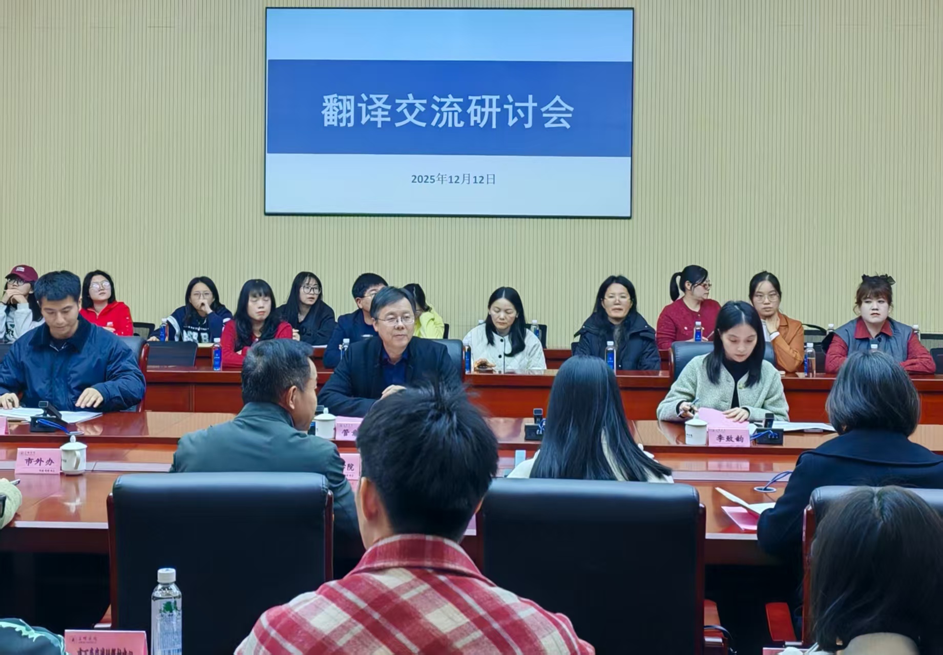 12月12日下午,由对外合作交流处和海外学院(外国语学院)承办的翻译交流研讨会在学术会议中心第二会议室成功举行。省外办翻译室主任管意彪、市政府办副主任韦海燕等领导,以及来自市委党校、市商务局、文旅局、公安局、国安局、消防救援支队、三钢集团、各区县外办、兄弟院校师生及企业界的代表近五十人参加了此次研讨会。