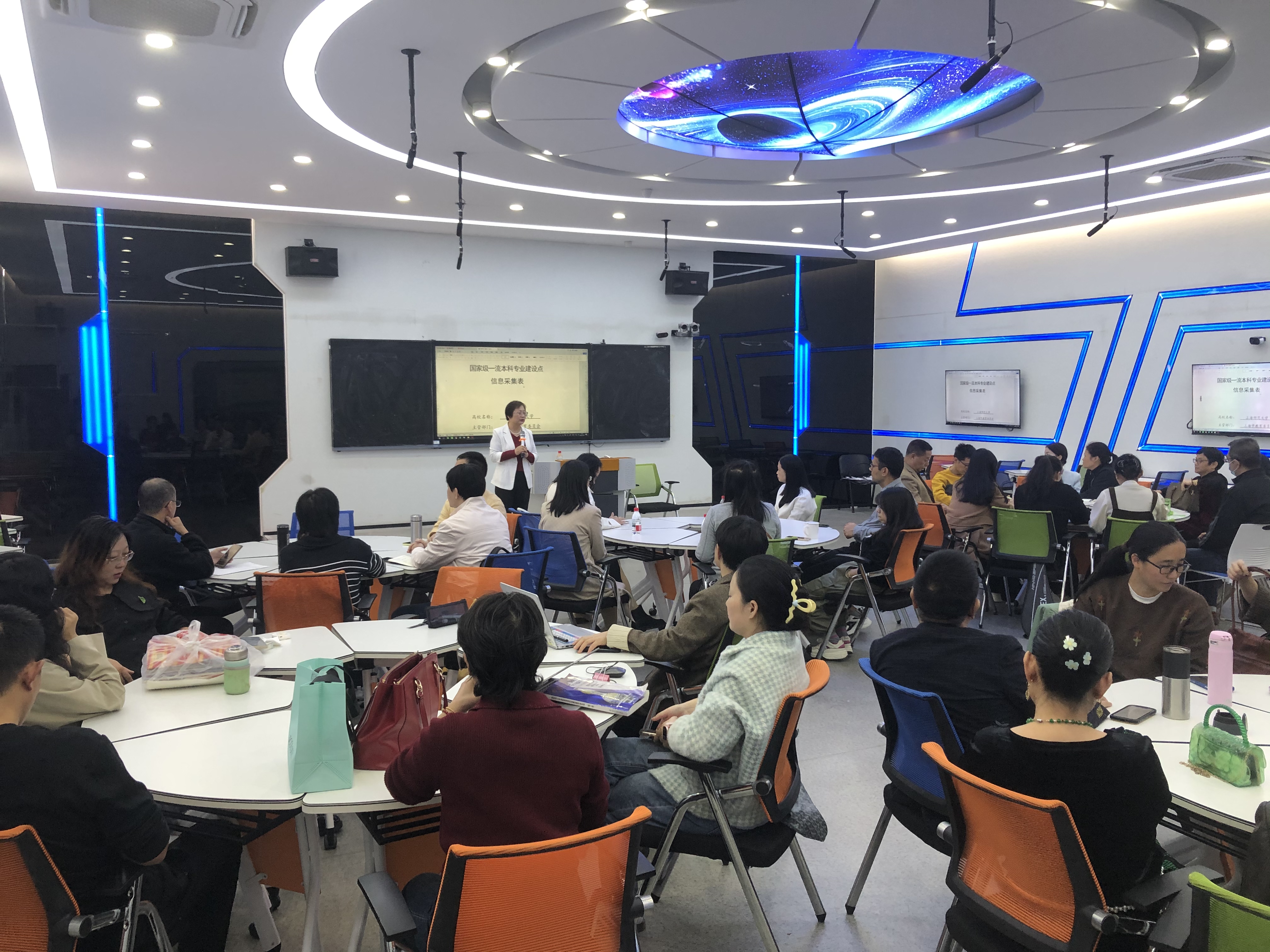 11月6日,海外学院(外国语学院)院长卢敏教授在鸿文楼(二)B102智慧教室做了《国家级一流本科英语专业建设经验分享》教育教学沙龙。院务委员黄菊芬副教授主持,经管学院吴雪教授和艺设学院文霞教授受邀参加沙龙,海外学院(外国语)学院全体教师与会。