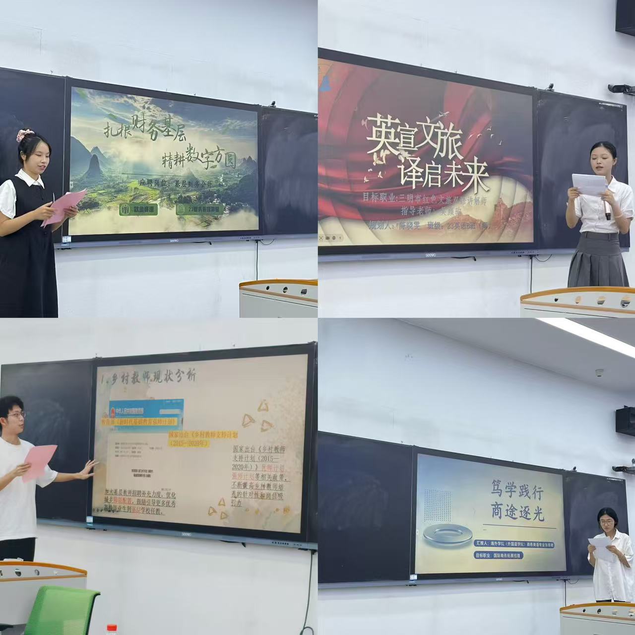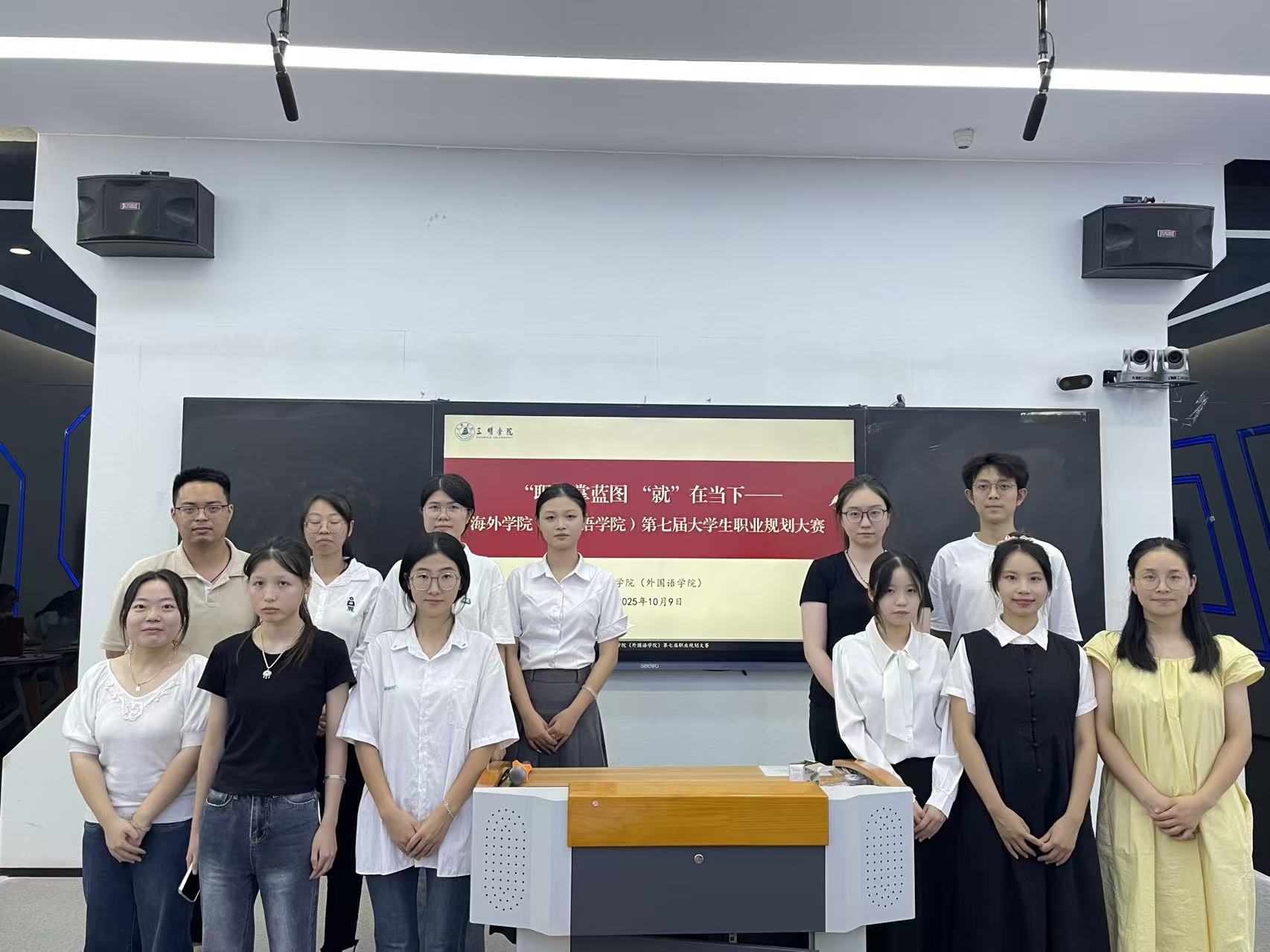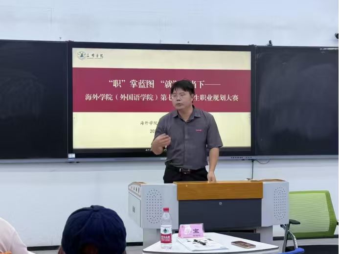 为进一步引导大学生树立正确的职业观与就业观,增强职业规划意识,促进学生高质量充分就业,10月9日,海外学院(外国语学院)在鸿文楼(二)智慧教室举办了第七届大学生职业规划大赛。本次大赛以“‘职’掌蓝图,‘就’在当下”为主题,院团委副书记李宝、王兴玮老师及各年级辅导员担任评委,学院50余名学生代表到场观摩。