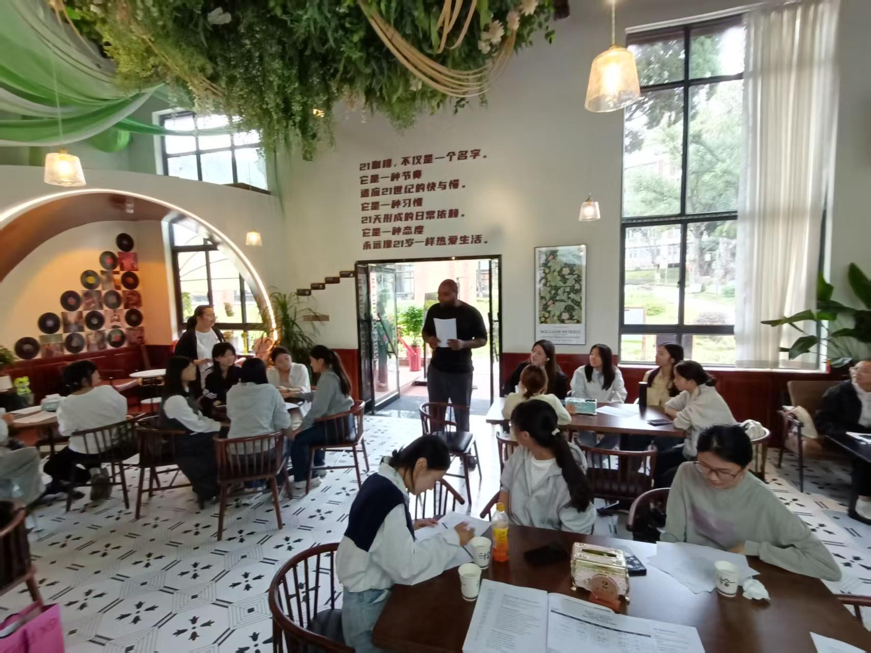 语言赋能,全球沟通。为促进语言交流与提升,海外学院(外国语学院)依托“一站式”学生社区平台,于10月29日在北区“21咖啡馆”文创区成功举办了“雅思英语口语角”活动。活动以“Television & Media”为主题,锤炼参与者实时倾听、快速反应、逻辑论证以及有效说服等真实沟通技能。学院领导、相关部门老师纷纷到场关切,活动吸引了近50余名中外师生参与。