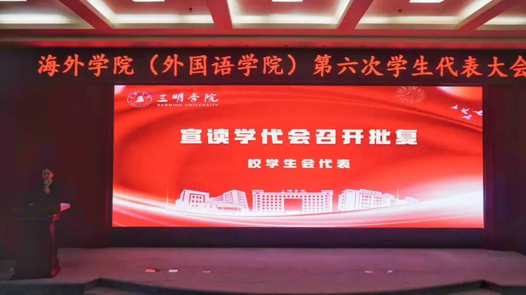 大会在庄严的国歌声中拉开帷幕。会议伊始,校学生会代表陈诗喧宣读了宣读校学生会《关于召开三明学院海外学院(外国语学院)第六次学生代表大会》的批复。