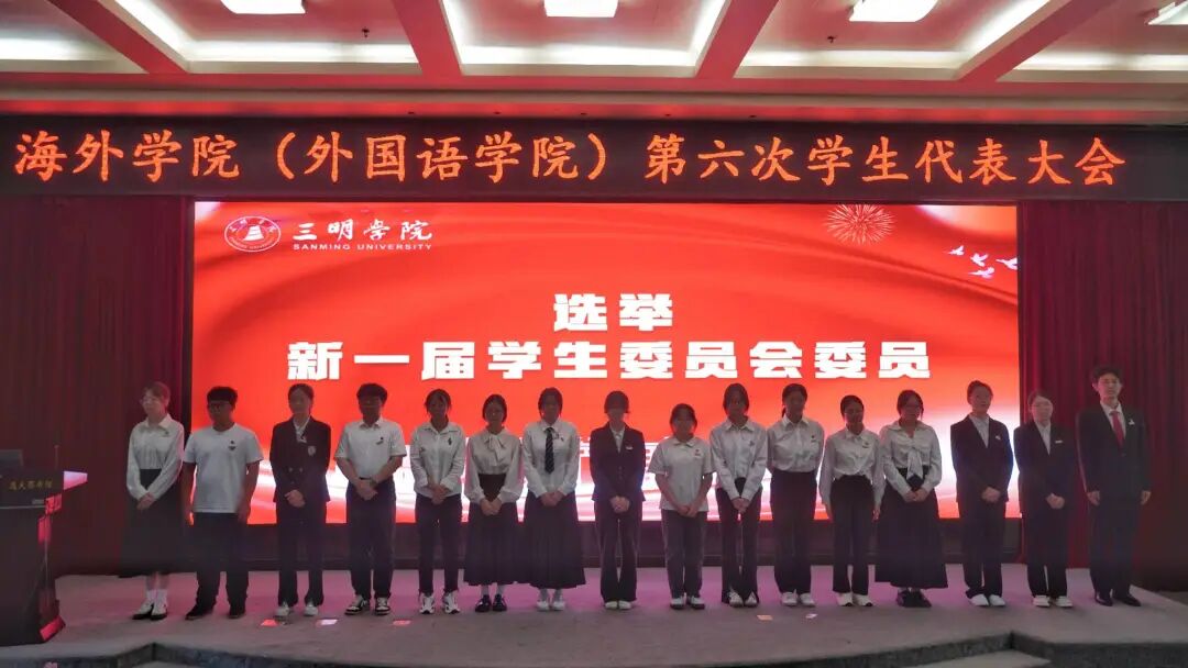 大会最后,全体代表起立,齐声奏唱团歌,海外学院(外国语学院)第六次学生代表大会在庄严而热烈的气氛中圆满落幕。本次大会组织严谨、程序规范,充分展现了海外学院(外国语学院)学生组织建设的科学化、制度化、民主化水平。展望未来,我院团委、学生会组织将以此次大会为新起点,继续秉持“全心全意为同学服务”的宗旨,为推动学院高质量发展、助力学生成长成才交出更优异的青春答卷。