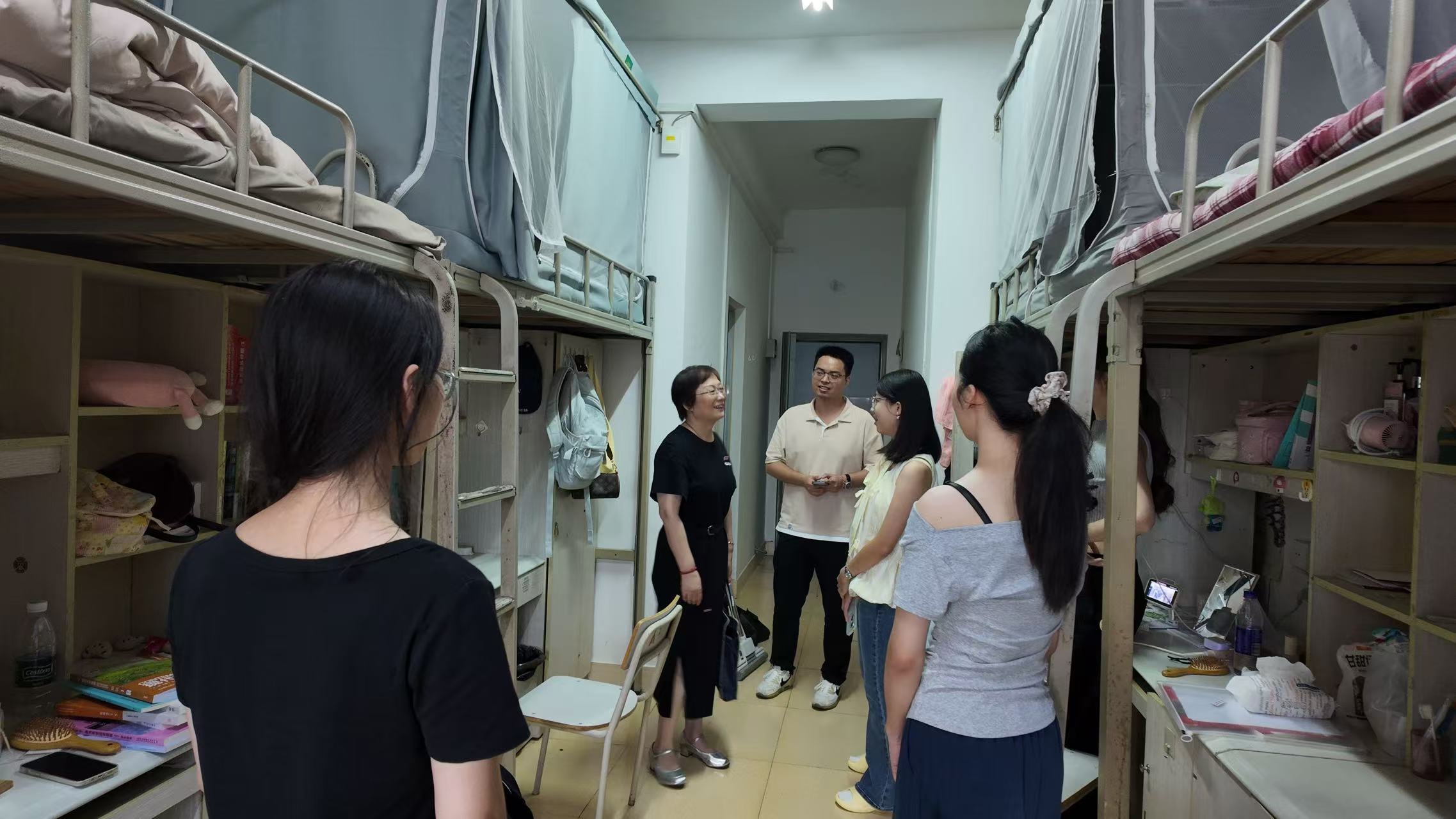 走访过程中,院领导与新生们进行了亲切友好的交流。“家乡是哪里的?”“学校的饮食还习惯吗?”“对未来的大学学习生活有什么规划?”每走进一间宿舍,院领导都关切地询问同学们的生源籍贯、入学感受和生活适应情况,耐心倾听同学们的回答,并细致地解答大家关于专业学习、校园生活等方面的疑问。现场气氛轻松融洽,欢声笑语不断。