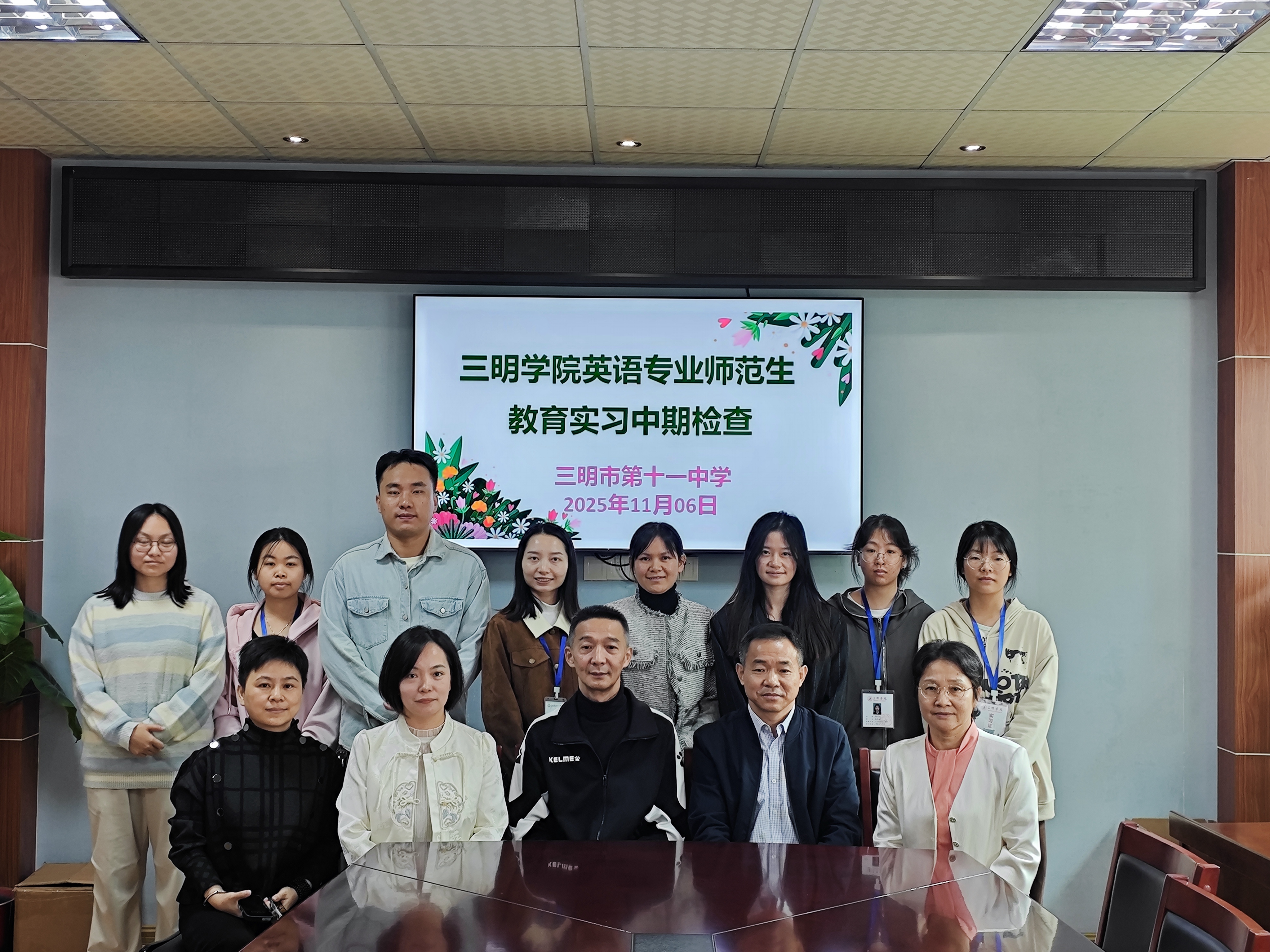 为进一步了解2022级英语专业实习生在实习学校的工作与学习状况,检验教育实习成效,深化院校协同育人机制,2025年11月6日下午,海外学院(外国语学院)党委书记刘景苗、院务委员兼英语专业负责人雷聪、实习带队教师李梅兰一行,前往三明市第十一中学开展教育实习中期检查工作。