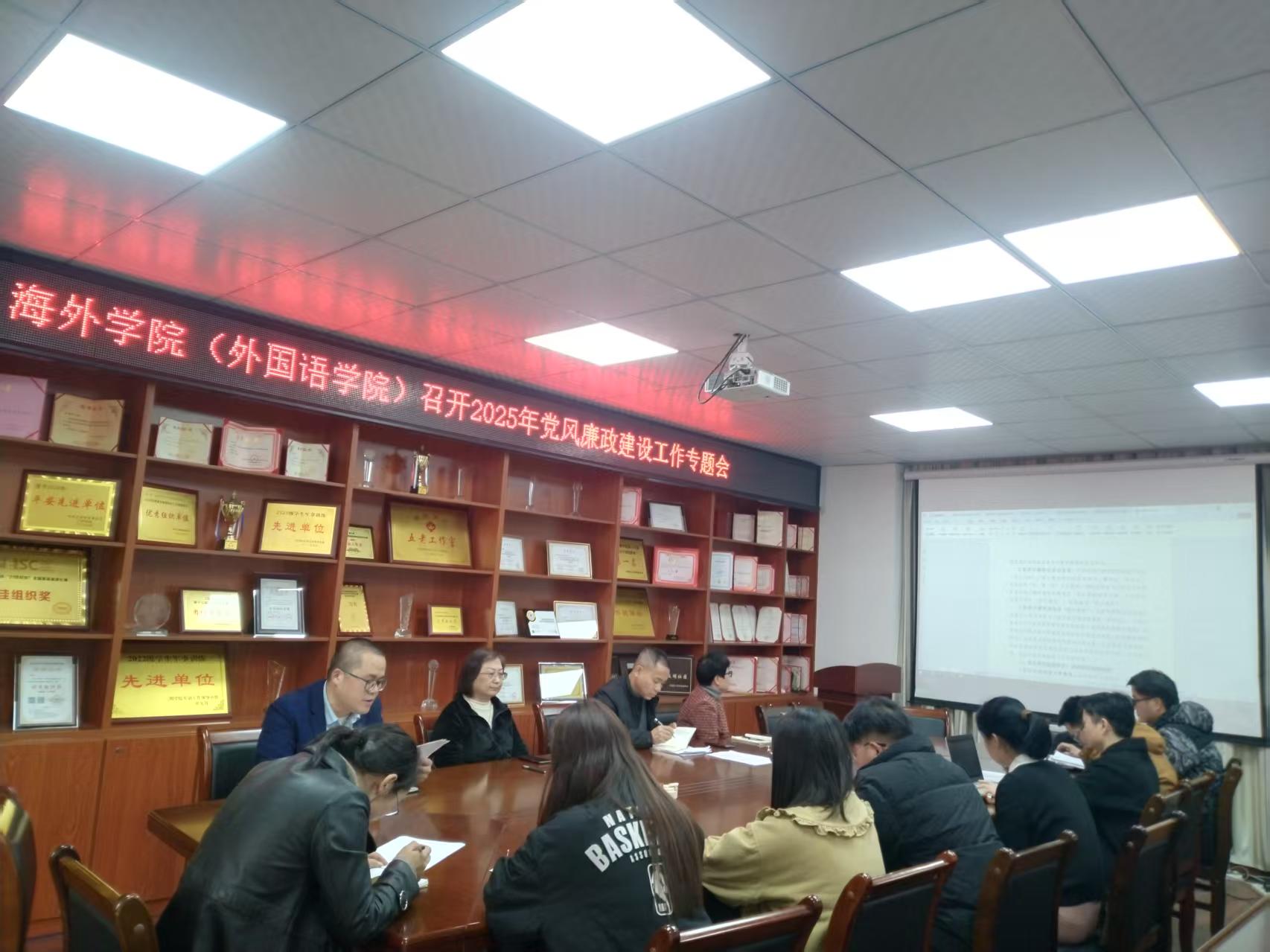 为纵深推进全面从严治党,筑牢教育高质量发展廉洁根基,海外学院(外国语学院)于4月2日召开党风廉政建设专题会,学院领导班子、各科室负责人及师生党支部书记参加了会议。