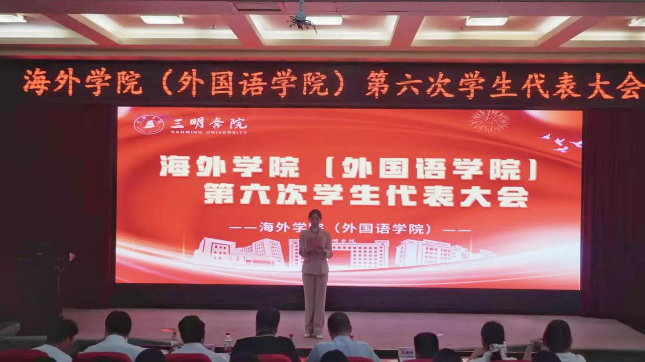 大会在庄严的国歌声中拉开帷幕。会议伊始,校学生会代表陈诗喧宣读了宣读校学生会《关于召开三明学院海外学院(外国语学院)第六次学生代表大会》的批复。