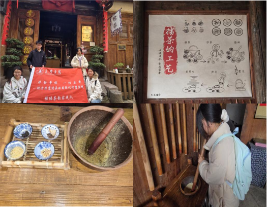实践队首站抵达泰宁大龙擂茶传承所。在传承人的悉心指导下,队员们亲手参与备料、炒制、擂碎、煮水等擂茶制作全流程。阵阵茶香与草药清香中,大家不仅直观体会到擂茶“药食同源”的养生内涵,更深深感受到这项延续千年的技艺所承载的生活智慧与凝聚乡邻的社交功能。活动期间,团队系统收集了擂茶的历史渊源、制作口诀及相关民俗礼仪,为后续构建多语种翻译资料库与国际传播素材积累了宝贵的一手资源。