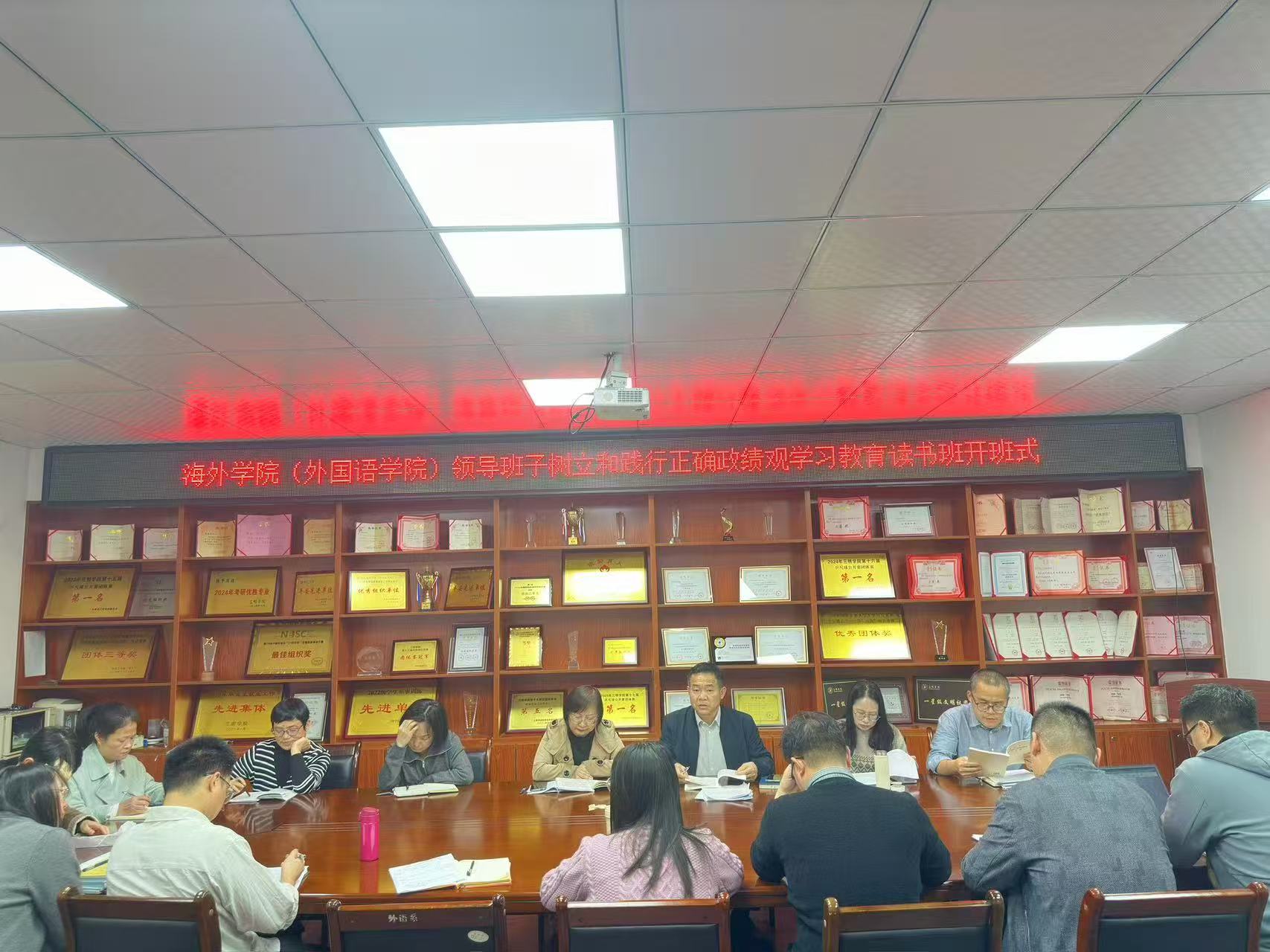 3月26 日下午,海外学院(外国语学院)领导班子树立和践行正确政绩观学习教育读书班开班式在鸿文楼(二)C302会议室举行。学院党政领导班子、各党支部书记参加会议。