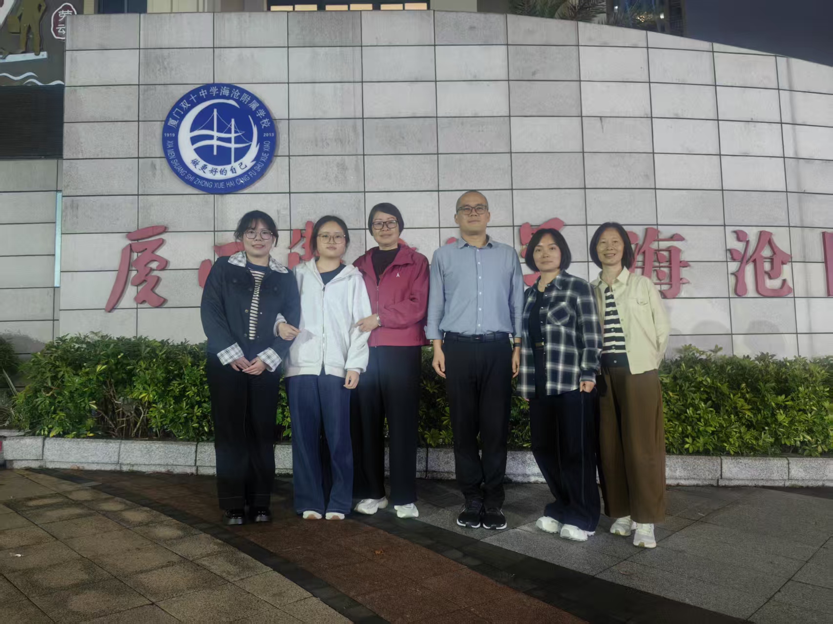 在厦门双十海沧附属中学,学院一行拜访92级英语专业校友卢寒青副校长、林秀珍老师,并看望英语(师范)实习生郑焱婷。卢寒青校友深情回忆母校求学时光,严谨反馈师范生实习情况,就建设教学实践基地达成一致意见,愿意为学院师范人才培养、毕业生就业工作贡献力量。