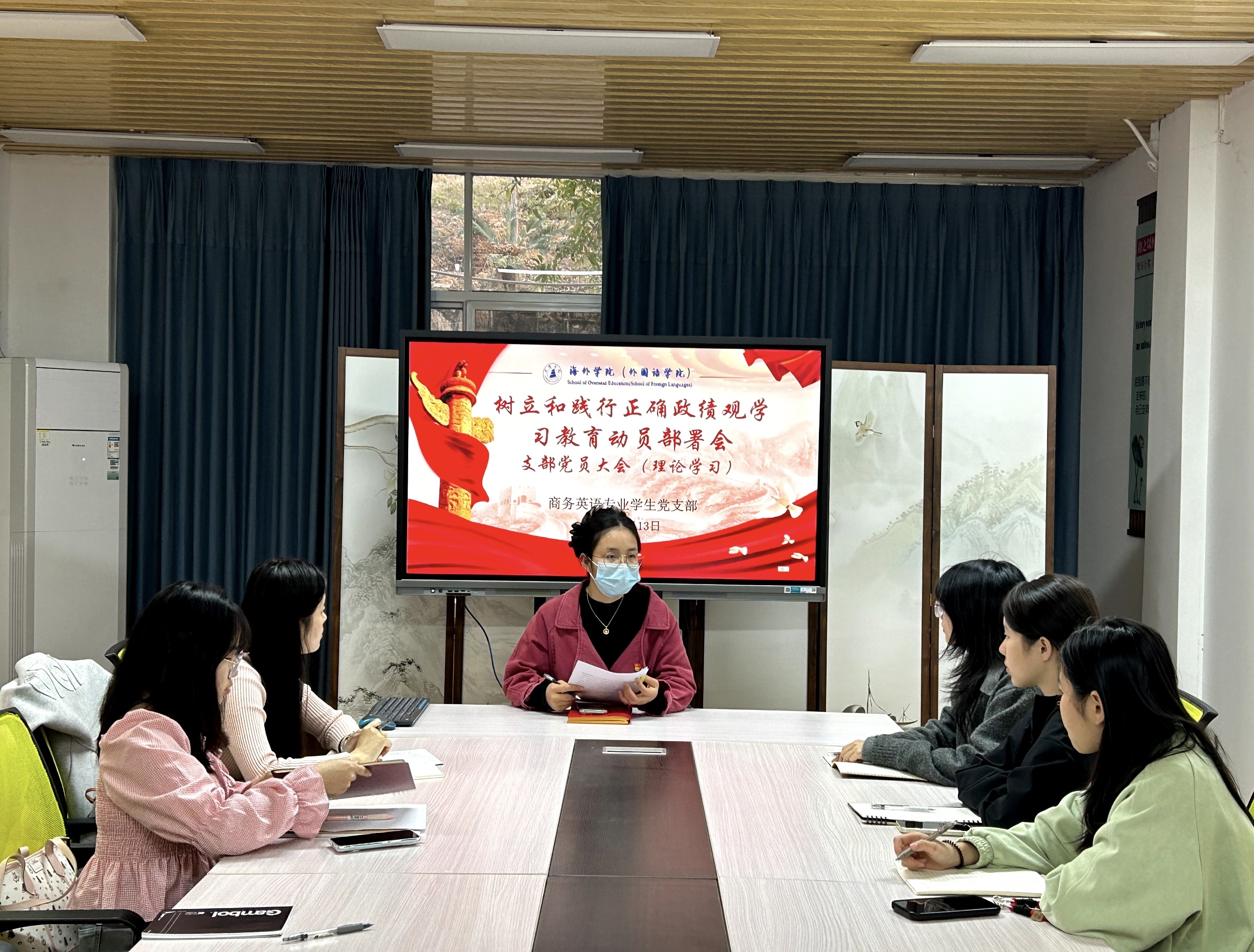 为夯实党建基础、推动支部建设提质增效,3月13日,商务英语专业学生党支部于鸿文楼(二)C107召开树立和践行正确政绩观学习教育部署启动会,会议由支部书记刘阳娟主持,支部全体党员参会。